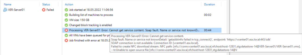 18.05.2022 11:07:23: Processing VER-Server01 Error: Cannot get service content.